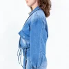 Full Size Drop Shoulder Cropped Denim Jacket With Waist Strap Plus Size – Blue
