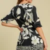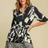 Full Size Floral Print Notched Tie Waist Mini Dress Plus Size – Black
