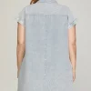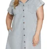 Full Size Folded Cuff Button Down Washed Twill Shirt Dress Plus Size – Blue Grey