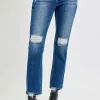 Full Size High Rise Distressed Crop Straight Jeans – Dark