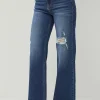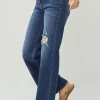 Full Size High Rise Distressed Wide Leg Jeans – Dark