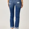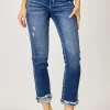 Full Size High-Rise Frayed Cuffed Straight Jeans – Dark