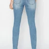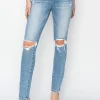 The High Rise Knee Distressed Skinny Jeans are a must-have for any fashion-forward wardrobe. Featuring a high-rise waist and skinny fit, these jeans offer a flattering silhouette that hugs your curves in all the right places. The distressed detailing at the knees adds a trendy and edgy touch to the classic design. Perfect for both casual and dressy outfits, these versatile jeans can be dressed up with heels or down with sneakers. Pair them with a flowy blouse or a fitted top for a chic and stylish look. Upgrade your denim collection with these stylish and versatile High Rise Knee Distressed Skinny Jeans today!