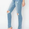 Full Size High Rise Knee Distressed Skinny Jeans – Light