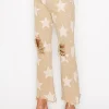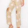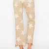 Full Size High Rise Star Printed Frayed Hem Jeans – Khaki