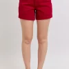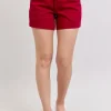 Full Size High Waist Tummy Control Garment Dyed Heart Shaped Denim Shorts Plus Size – Scarlet