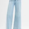 High waist wide leg pintuck detailed jeans are a versatile and stylish addition to your wardrobe. The high waist design is flattering and can help elongate the legs, while the wide leg cut adds a chic and fashion-forward element to the jeans. The pintuck detailing adds a touch of sophistication and visual interest to the overall look. These jeans are perfect for creating both casual and dressier outfits. Pair them with a tucked-in blouse and heels for a polished and trendy look, or style them with a basic tee and sneakers for a more relaxed vibe. The combination of high waist, wide leg, and pintuck detailing makes these jeans a fashion statement that can take your outfit to the next level.
