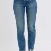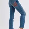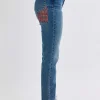 Full Size Hw Plaid Patch Slim Fit Jeans Plus Size