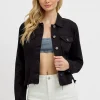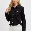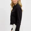 Full Size Irregular Fray Hem Button Up Denim Jacket Plus Size – Black