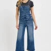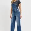 Full Size Knotted Strap Denim Overalls With Pockets Plus Size – Dark