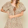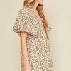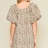 Full Size Lace Tape Drawstring Floral Puff Sleeve Mini Dress Plus Size – Caramel