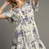 Full Size Landscape Print Collared Mini Dress Plus Size – Cream