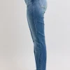 Full Size Mid Rise Skinny Cuff Jeans With Pockets Plus Size – Dark