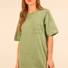 Full Size Mineral Washed Knit Shift Mini Dress Plus Size – Sage