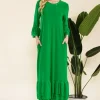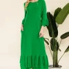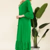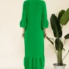 Full Size Modest Midi Dress with 3/4 Ruffle Bell Sleeves Plus Size – Green