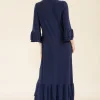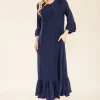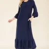 Full Size Modest Midi Dress with 3/4 Ruffle Bell Sleeves Plus Size – Navy