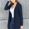 Full Size Open Front Long Sleeve Cardigan – Dark Blue