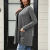 Full Size Open Front Long Sleeve Cardigan with Pockets – Dark Gray