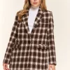 The Plaid Brushed One Button Blazer is a sophisticated and timeless addition to your wardrobe. This blazer exudes elegance and style with its classic plaid pattern and brushed fabric. The one-button closure adds a sleek and tailored look to the silhouette. This blazer can easily elevate any outfit, perfect for professional settings and casual outings. Pair it with a chic office look or jeans for a more relaxed vibe. Stay polished and on-trend with this versatile plaid blazer as a staple piece in your closet.