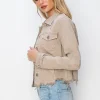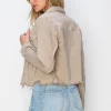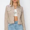 Full Size Raw Hem Button Up Cropped Denim Jacket Plus Size – Khaki