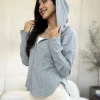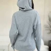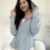 Full Size Ribbed Zip Up Drawstring Hooded Jacket – H.Grey