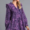 Full Size Ruffled Printed Piping Detail Long Sleeve Dress Plus Size – Violet