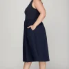 Full Size Sleeveless Poplin Woven Midi Dress with Pockets Plus Size – Dark Navy
