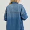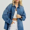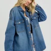 Full Size Snap Down Long Sleeve Denim Shacket – Dark