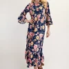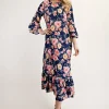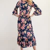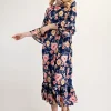 Full Size Soft Floral Ruffle Trim Dress Plus Size – Navy Floral