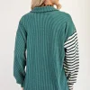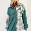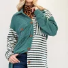 Full Size Striped Button Up Dropped Shoulder Shacket – Turquoise