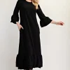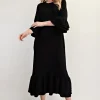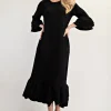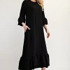 Full Size Textured Ruffle Hem Modest Dress Plus Size – Black