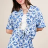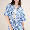Full Size Tropical Printed Shirt Top and Shorts Set Plus Size – Blue