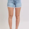 Full Size Tummy Control Raw Hem Denim Shorts Plus Size – Light