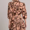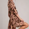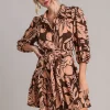 Full Size Two Tone Floral Print Puff Sleeve Tie Waist Dress Plus Size – Brown