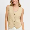 Full Size V Neck Button Down Vest Plus Size – Latte