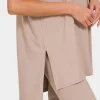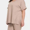Full Size V-Neck Short Sleeve Slit T-Shirt and Shorts Set – Ash Mocha