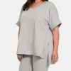 Full Size V-Neck Short Sleeve Slit T-Shirt and Shorts Set – Lt Grey