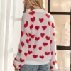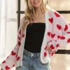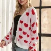 Fuzzy Heart Button Down Cardigan – Ivory/Red
