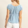 Gingham Scoop Neck Cap Sleeve Blouse – Blue