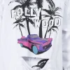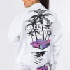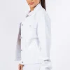 Graphic Distressed Long Sleeve Denim Jacket – White