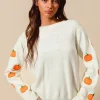 Halloween Pumpkin Applique Embroidered Sweater Top – Ivory
