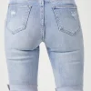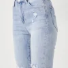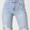 The High Rise Distressed Denim Bermuda Shorts offer a trendy twist on classic denim. With their high-rise fit, these shorts provide a flattering silhouette while the distressed detailing adds a touch of casual edge. The Bermuda length ensures comfort and versatility, making them a stylish choice for laid-back summer days or a relaxed weekend look.