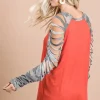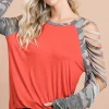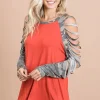 Jersey Knit Top with Camouflage Laser Cut Sleeves – Rust