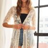 This elegant cover up features delicate lace crochet detailing over sheer fabric, offering a chic and sophisticated look. Perfect for layering over swimwear or pairing with a simple outfit, this cover up adds a touch of femininity and style to any ensemble. The intricate lace crochet design gives it a romantic and ethereal vibe, making it a versatile and fashionable piece for various occasions.