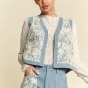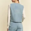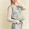 The Lace Patch Open Front Denim Vest is a trendy and stylish garment featuring lace accents for a feminine touch. The open front design adds a modern and versatile element to the vest. Made from denim material, this vest offers a casual yet chic look that can be dressed up or down. Perfect for layering over tops and dresses, the denim vest with lace patch detailing adds a fashionable twist to any outfit.