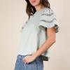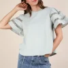 A lace trim sleeve top is a feminine and elegant piece that adds a touch of sophistication to any outfit. The delicate lace trim detailing on the sleeves gives the top a romantic and soft look, perfect for both casual and dressier occasions. This type of top can be styled in various ways – pair it with high-waisted jeans for a chic and casual look, or dress it up with a skirt or dress pants for a more polished ensemble. The lace trim adds a subtle and pretty detail to the top, making it a versatile and stylish addition to your wardrobe.