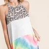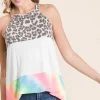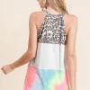 Leopard and Tie Dye Block Halter Neck Top – Ivory
