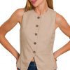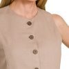 A linen button-down vest is a versatile and stylish piece that can be worn in various ways to elevate your outfit. The linen fabric makes it lightweight and breathable, perfect for warm weather or layering during cooler seasons. The button-down design adds a sophisticated touch, and you can dress it up or down depending on the occasion. Pair it with a blouse and trousers for a chic workwear look, or wear it over a dress or with jeans for a casual yet polished ensemble. The vest can also be worn open or closed, giving you options to style it according to your preference. Overall, a linen button-down vest is a great addition to your wardrobe for adding an extra layer of interest and style to your outfits.