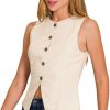 Linen Button Down Vest – Sand Beige