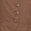 Linen Tie-back 4-button Vest with Lining – Brown